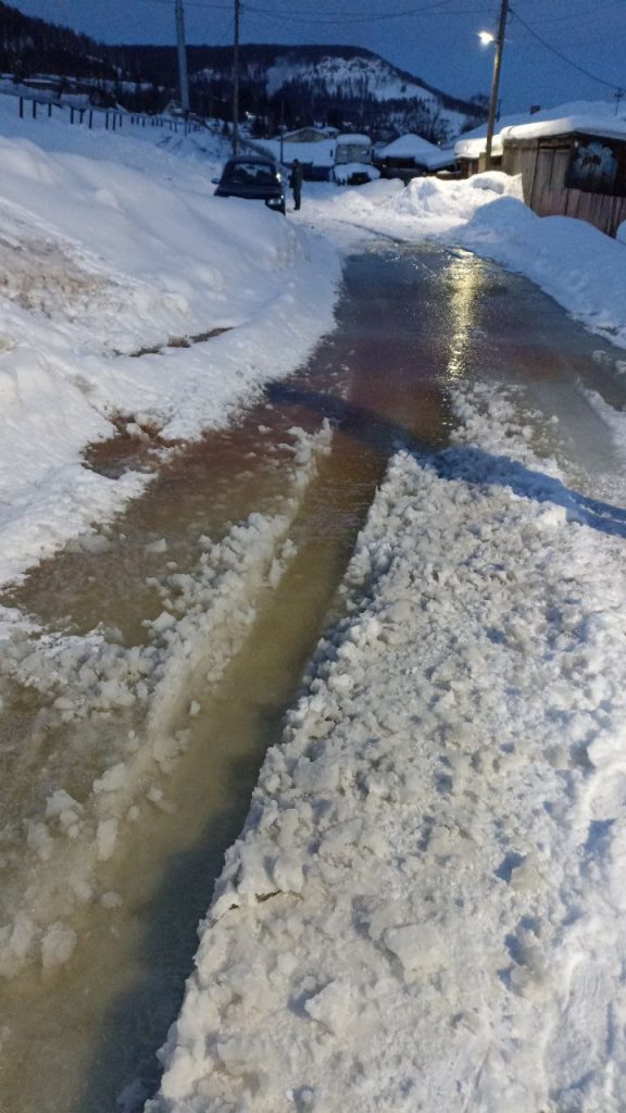 Не смотря на звонки в аварийные службы города, воду до сих пор никто не перекрыл и людям заливает подвалы и ограды. У некоторых уже затоплены гаражи я септики. Холодная вода бежит по дороге.